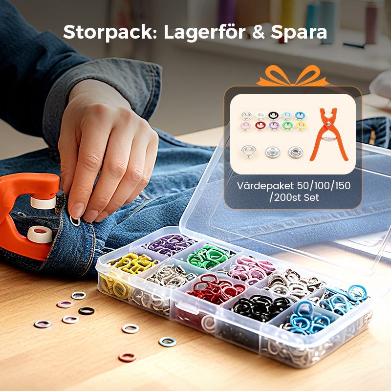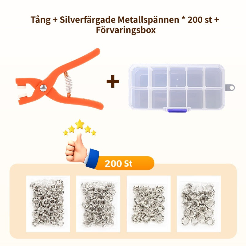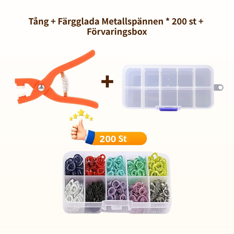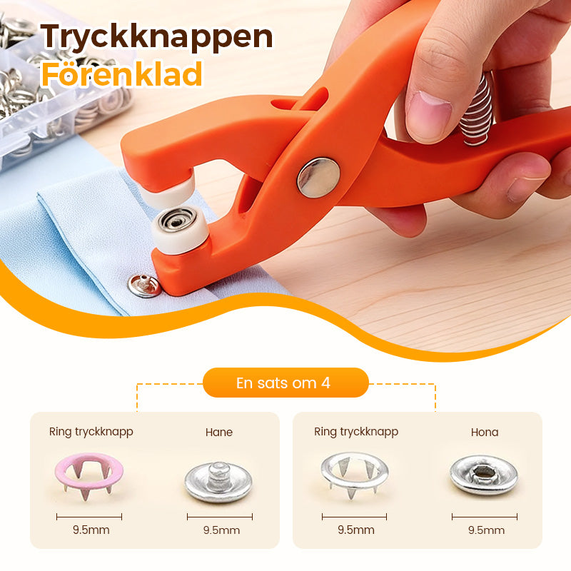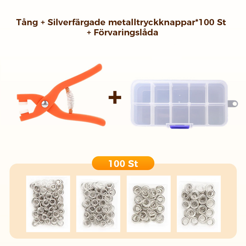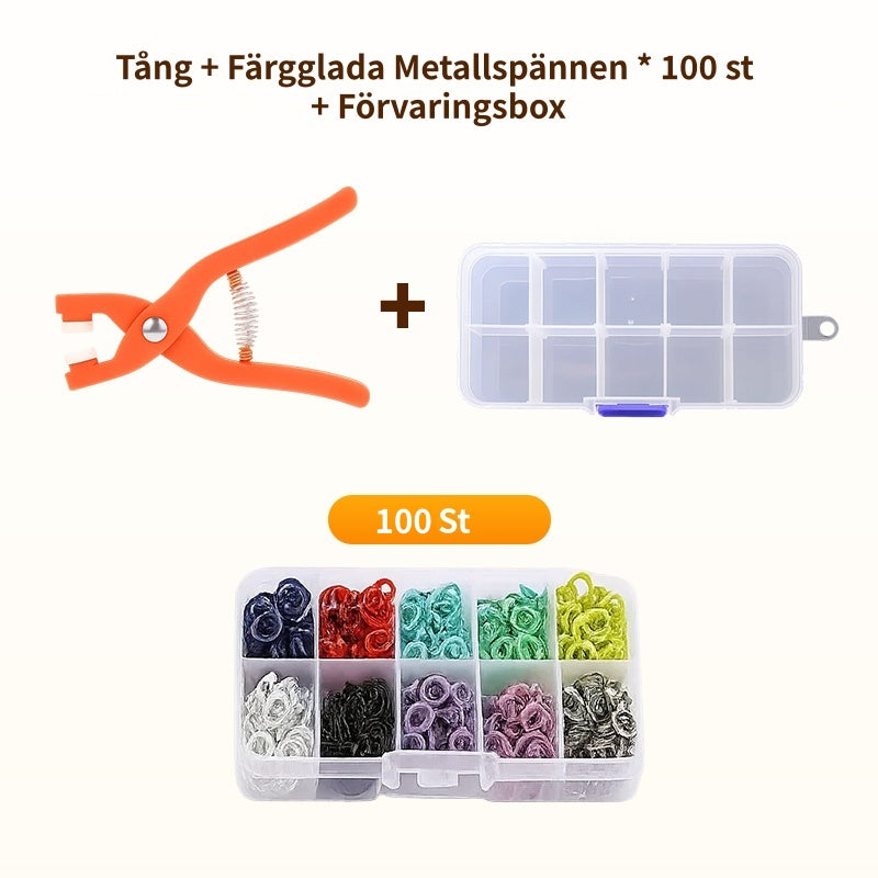 Metalltryckknappar med fästtångsverktygssats