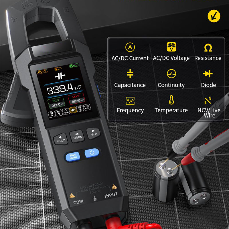 10000 COUNTS CLAMP METER: Det är en 10 000-tals mycket exakt intelligent klämmätare som täcker 750V spänning och 600A ström ultrabrett intervall, oavsett om det är tekniskt underhåll, laboratorieforskning eller fordonsöversyn, elektrisk diagnostik i hemmet, kan vara lätt att hantera.