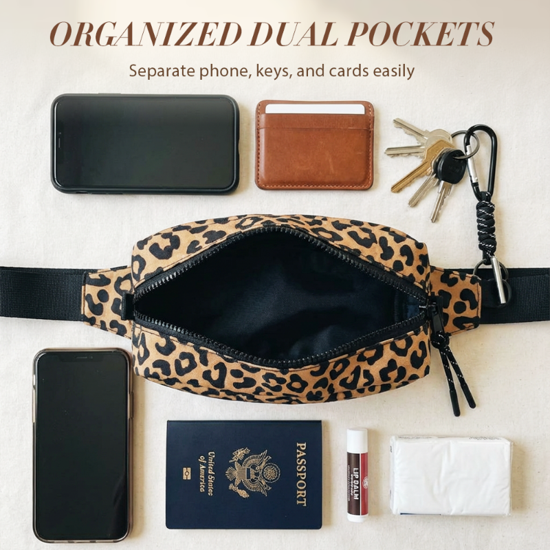 DUAL-LAYER STORAGE - Keep your daily essentials perfectly organized. This bag features two separate zippered compartments, allowing you to store your phone, wallet, keys, and other small items securely and access them with ease.