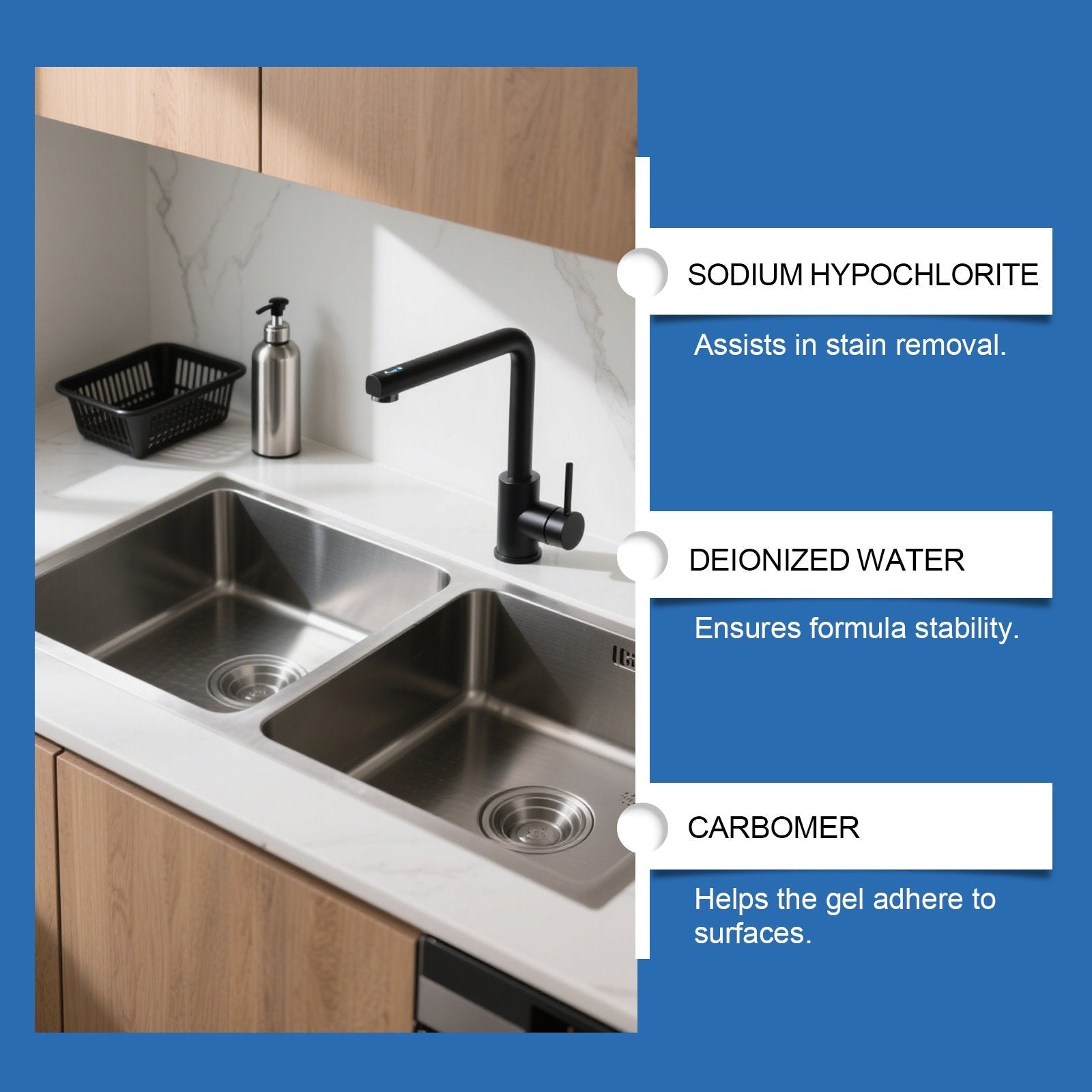 Trots sina starka rengöringsegenskaper är preparatet inte frätande och är milt mot ytor. Den kan användas säkert i hem med barn eller husdjur. Den rengör effektivt utan att skada material eller lämna aggressiva kemiska rester.