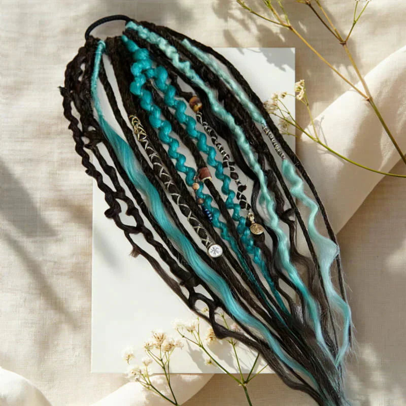 10 enkel- och dubbelsidiga dreadlocks av syntet och ull