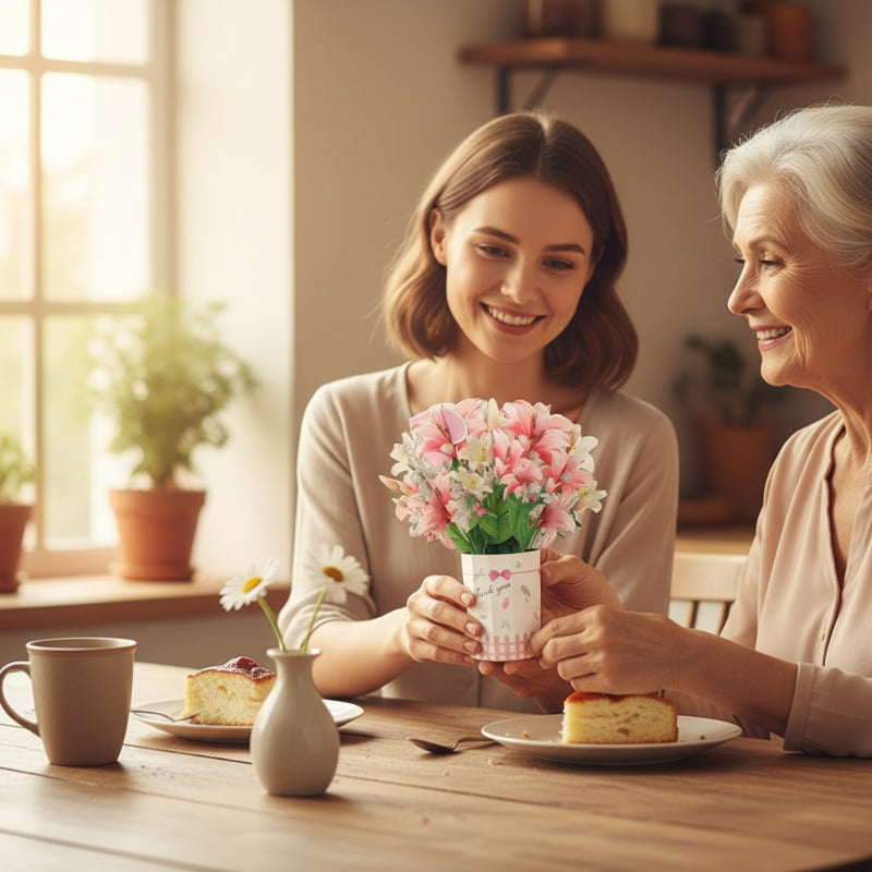 FANTASTISK 3D POP-UP-DESIGN - Viker ut sig till en livfull, tredimensionell blomsterarrangemang, skapar en omedelbar och förtjusande överraskning som ger ett bestående intryck på mottagaren.