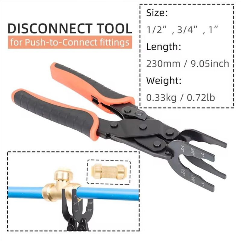 UNIVERSELL ANVÄNDNING – Disconnect Tong är kompatibel med olika rörmaterial, inklusive koppar, PEX och CPVC, i valfri kombination. Dess mångsidighet gör den användbar i olika miljöer, vilket gör den till ett oumbärligt verktyg för både professionella rörmokare och hantverkare.