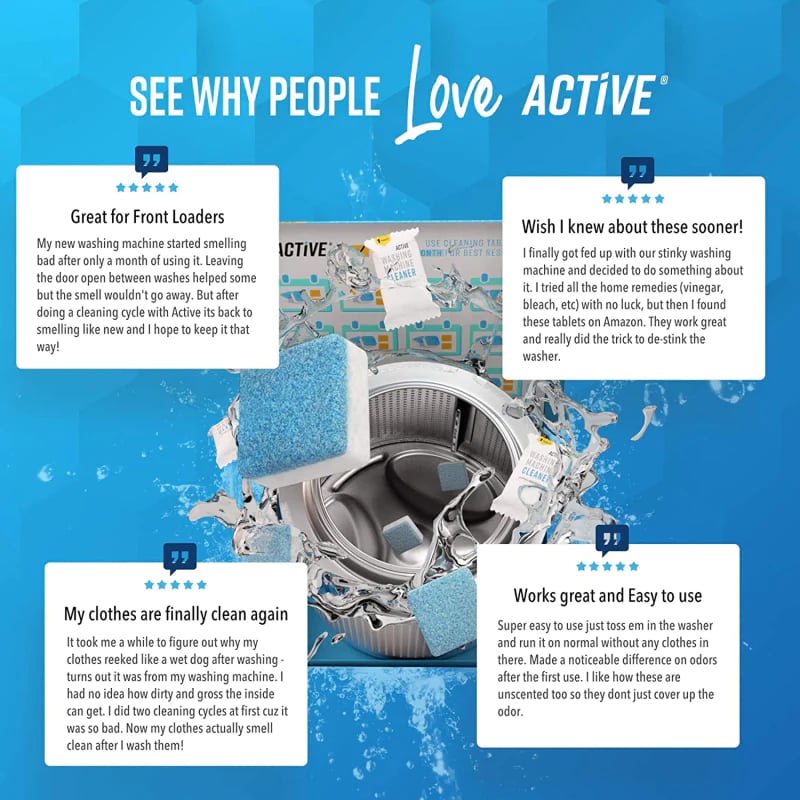 â ïž DJUPRENGĂRINGïŒRengör all smuts som fastnat i varje hörn av tvĂ€ttmaskinen. Kraftfull nog att trĂ€nga igenom, lösa upp och bryta ner luktbildande rester.